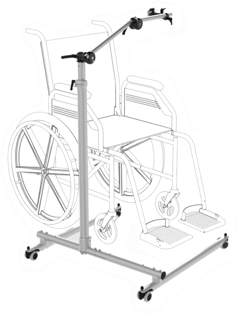- Telescopic rolling floorstand for positioning devices over beds, recliners or wheelchairs.