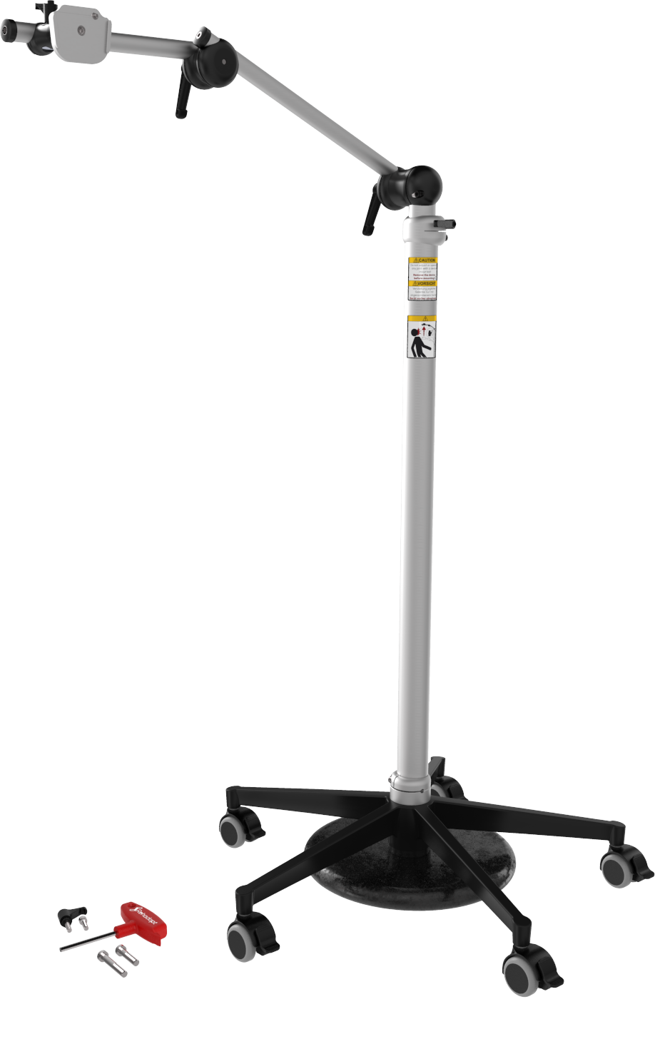 Classic floorstand arm with double-clamp UDS & QuickShift joints on a small–footprint base. - Load capacity: 5kg (11lbs).